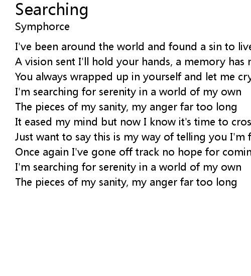 I'm searching for serenity in a world of my own |