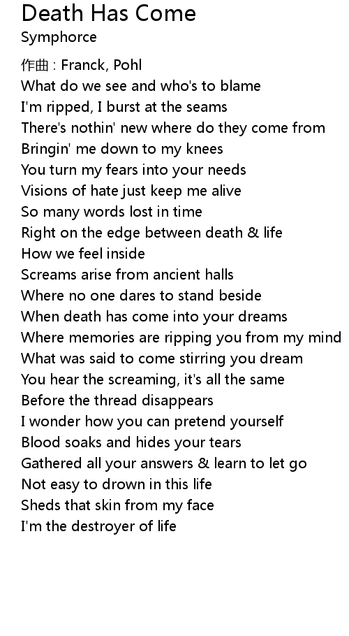 | 歌曲 | Death Has Come |