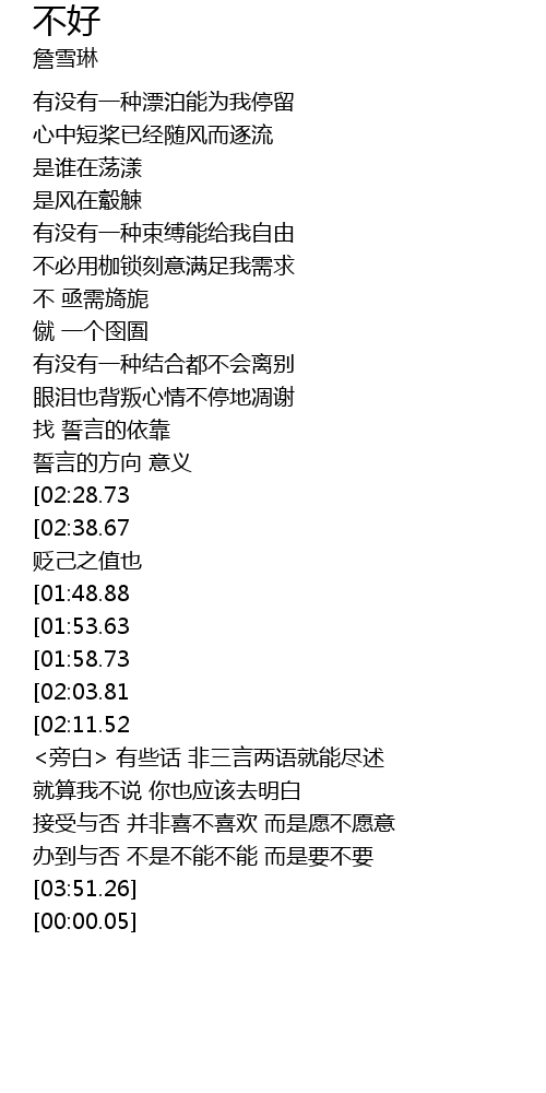 | [03:19.92][01:58.73] | 舍不得 不是你该有理由 |