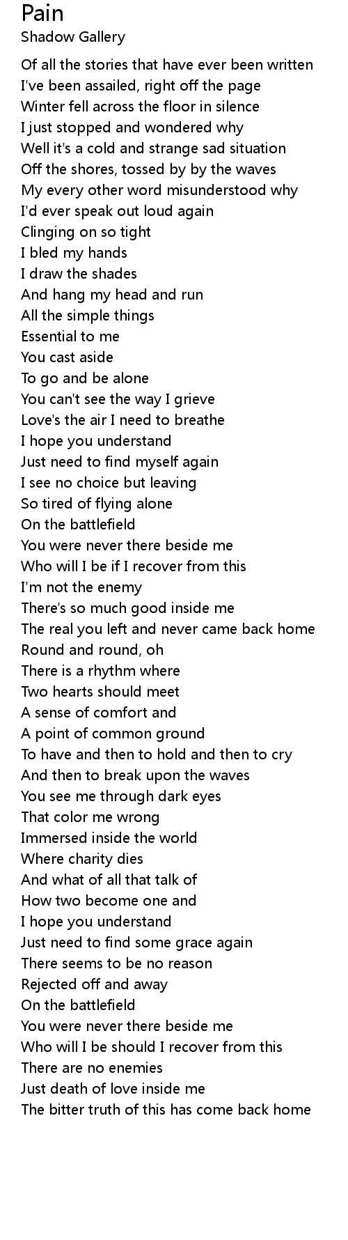 You can't see the way I grieve |