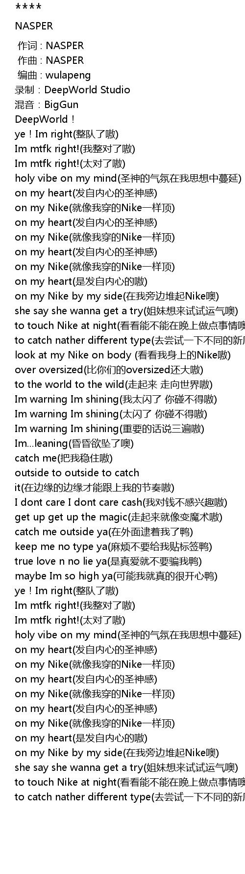 | [00:48.07] | look at my Nike on body (看看我身上的Nike嗷) |