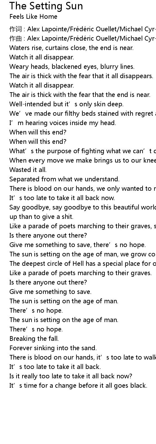| 作词 : Alex Lapointe/Frédéric Ouellet/Michael Cyr-Landry/Steven Cloutier | |