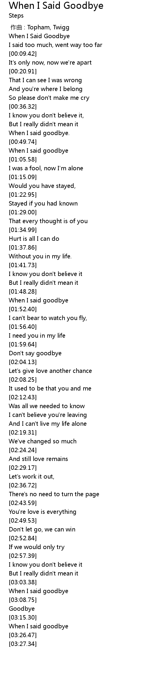 | [01:49.53] | When I said goodbye |