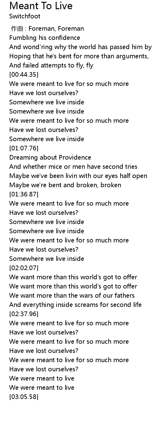 | [03:01.88] | We were meant to live |
