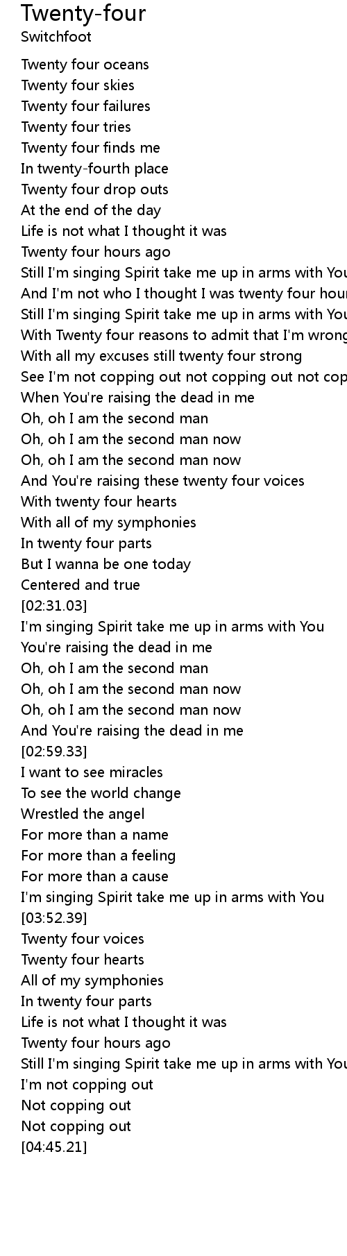 [01:12.29] With Twenty four reasons to admit that I'm wrong