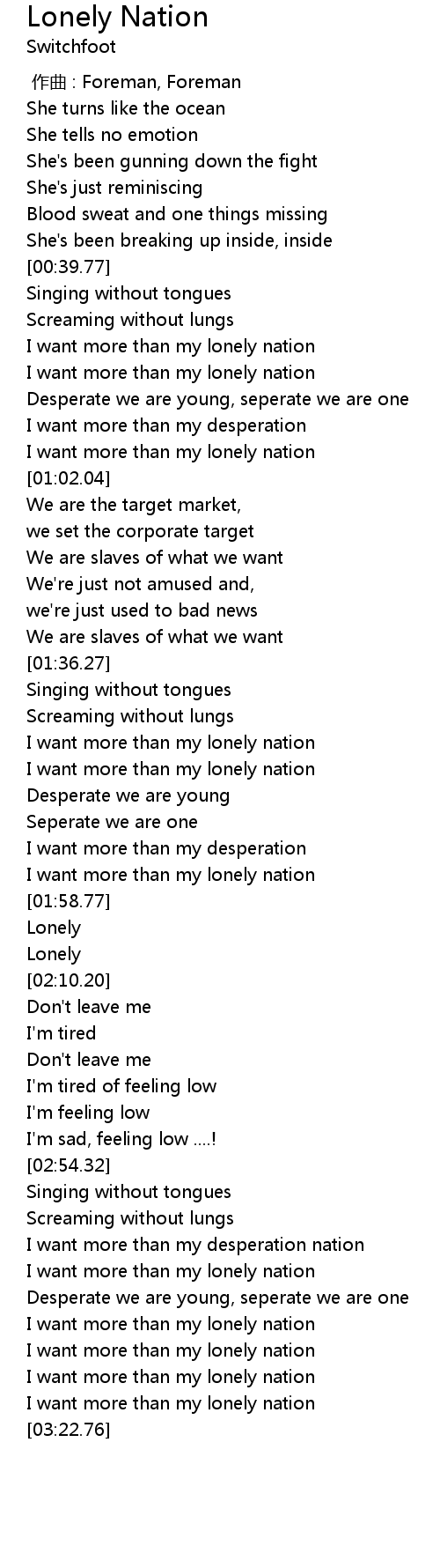 | [00:45.75] | I want more than my lonely nation |