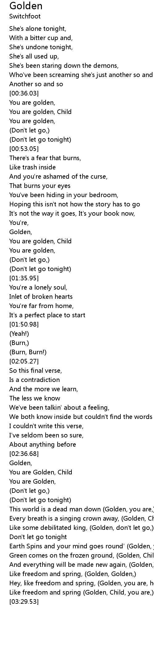 [02:39.39] You are Golden, Child