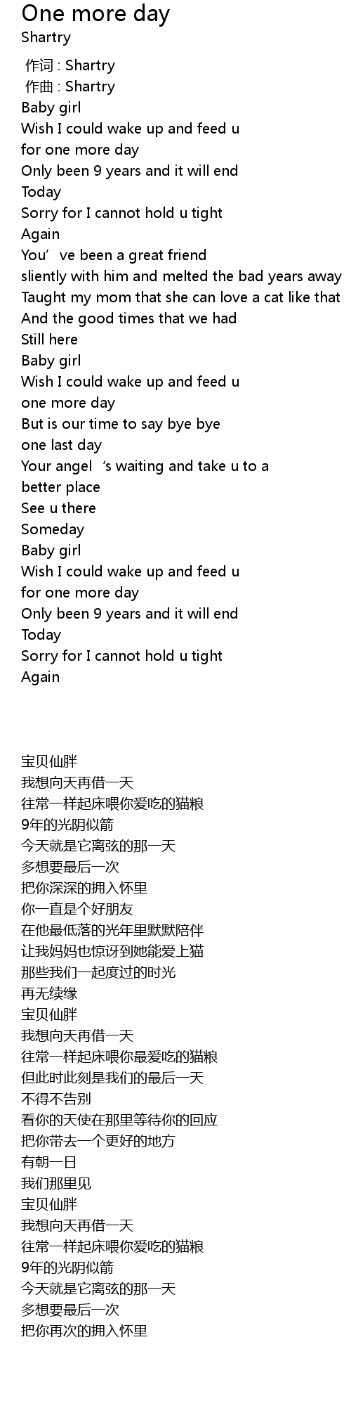 | [00:07.448] | 往常一样起床喂你爱吃的猫粮 |