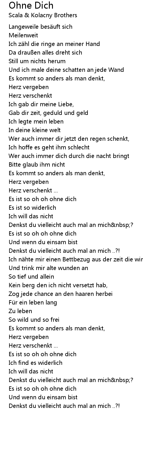 | Es ist so oh oh ohne dich | |