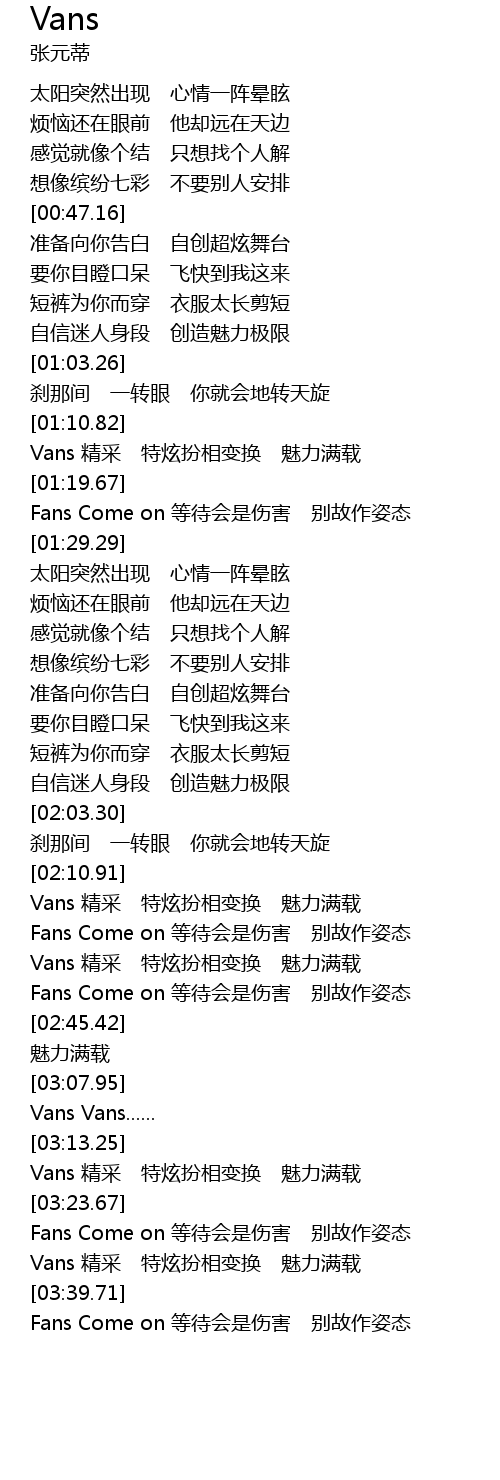 | [01:12.50] | Vans 精采 特炫扮相变换 魅力满载 |