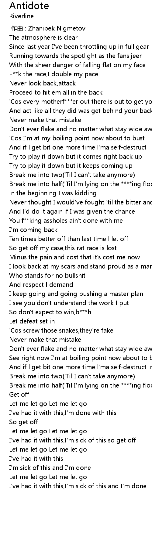 | [01:35.900] | Break me into half('Til I'm lying on the ****ing floor) |