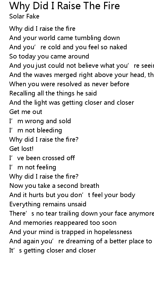 | Why did I raise the fire | |