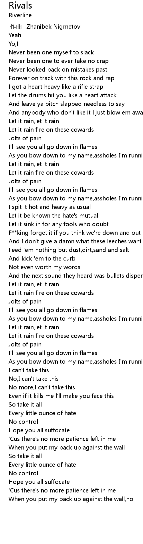 | [01:52.000] | Let it rain fire on these cowards |