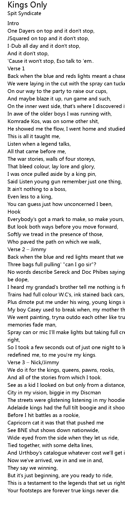 | 歌曲 | Kings Only |