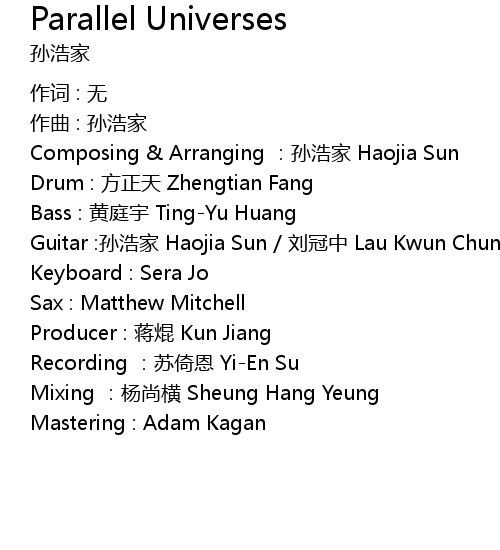| Composing & Arranging :孙浩家 Haojia Sun | |