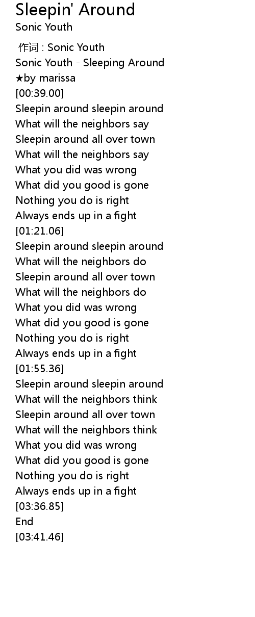 | [00:13.00] | Sonic Youth Sleeping Around |