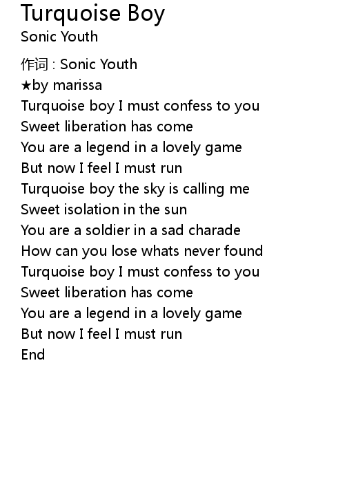 | Turquoise boy I must confess to you | |