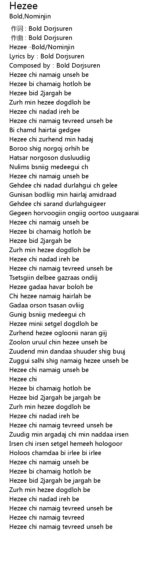 | [00:00.758] | Lyrics by: Bold Dorjsuren |