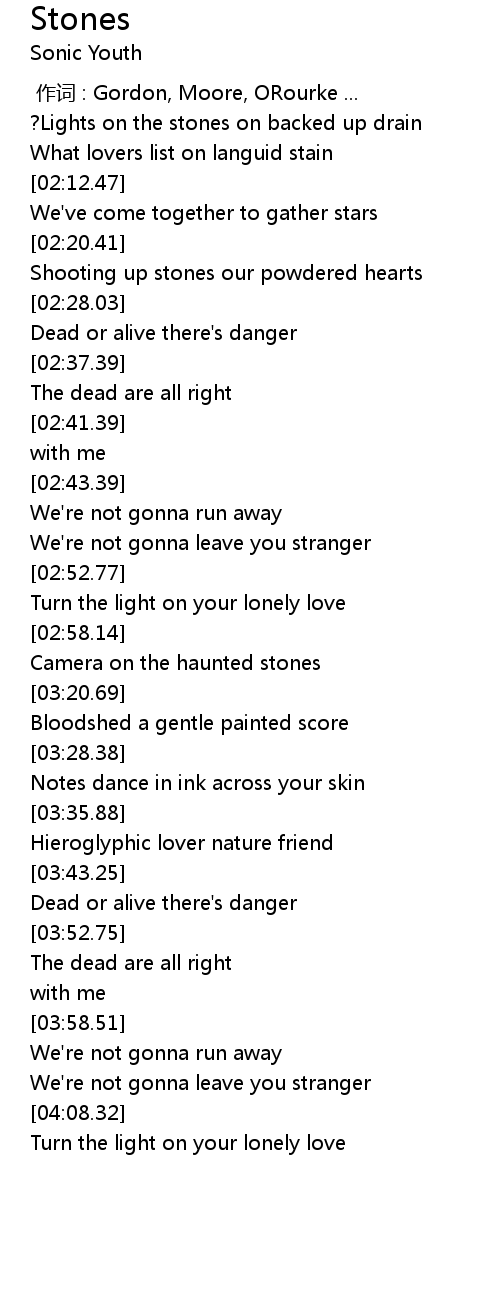 | [00:00.00] | 作词 : Gordon, Moore, ORourke ... |