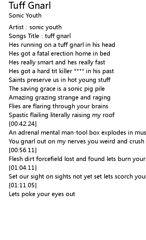 | [00:50.49] | You gnarl out on my nerves you weird and crush the cranking raunch |