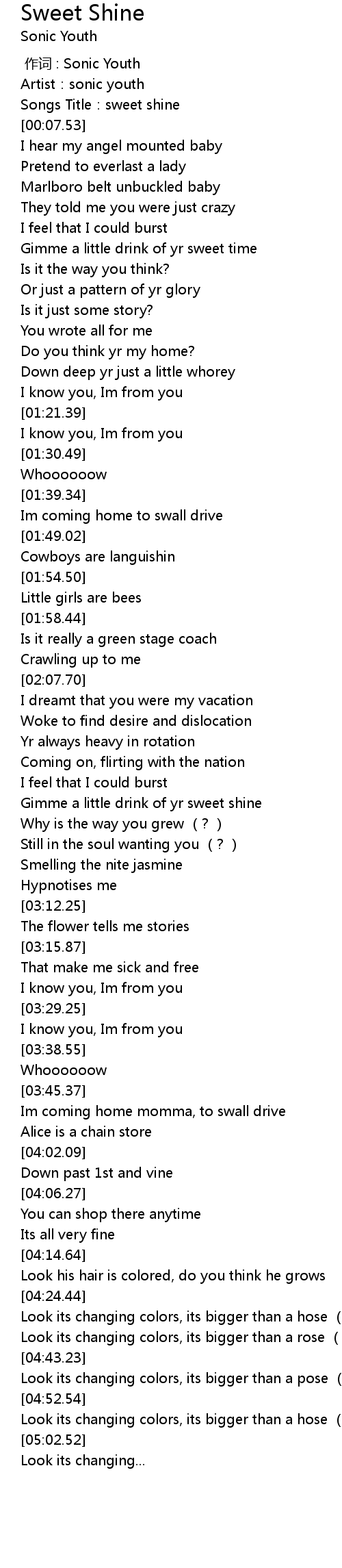 | [02:49.85] | Gimme a little drink of yr sweet shine |