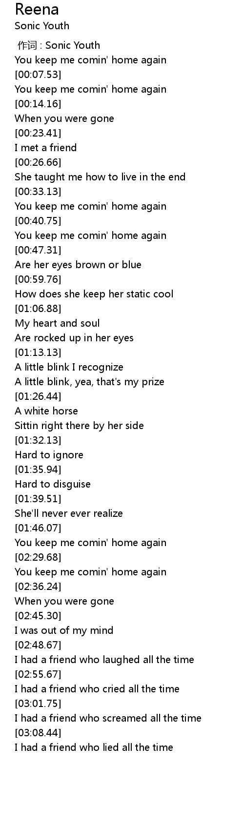 | [00:00.00] | 作词 : Sonic Youth |