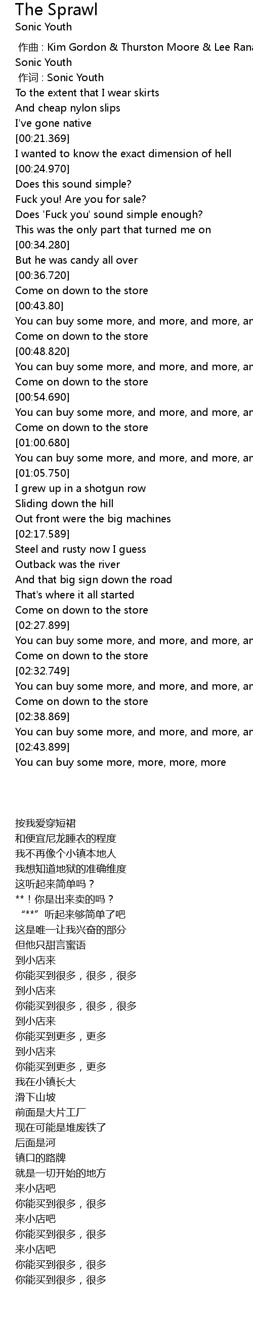 | [00:01.00] | 作词 : Sonic Youth |