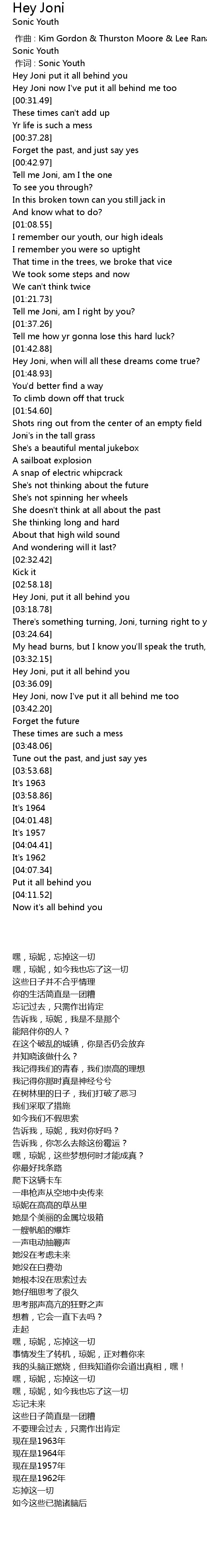 | [00:28.49] | Hey Joni now I've put it all behind me too |