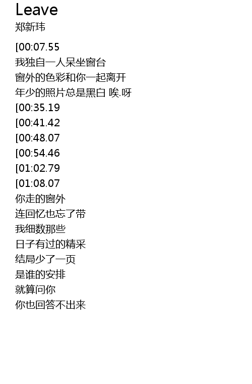 | [00:19.83] | 窗外的色彩和你一起离开 |