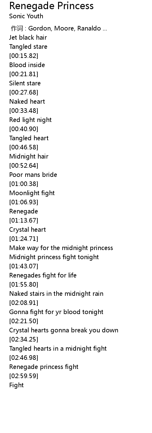 | [00:00.00] | 作词 : Gordon, Moore, Ranaldo ... |