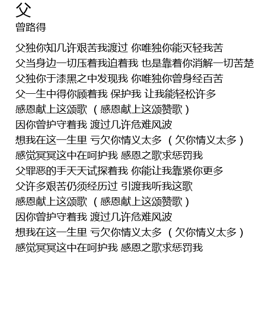 | [02:17.47] | 父许多艰苦仍须经历过 引渡我听我这歌 |