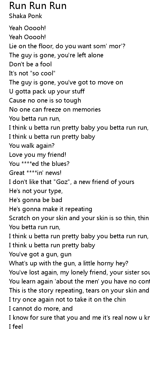 I think u betta run pretty baby you betta run run,