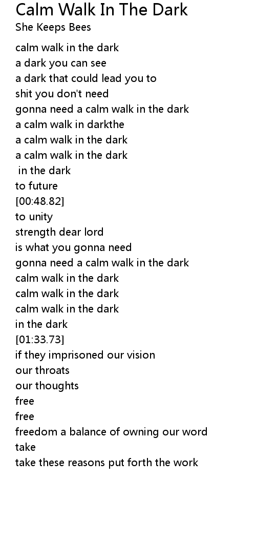 gonna need a calm walk in the dark |