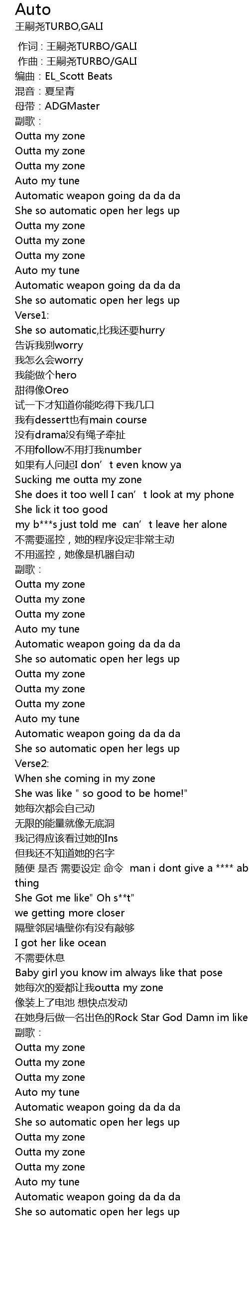 | [00:01.000] | zuo qu : wang si yao TURBO GALI |