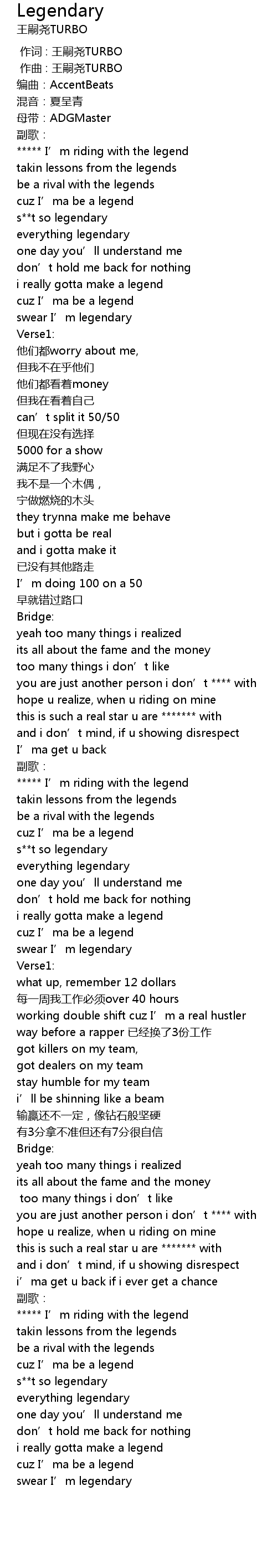 | [00:34.917] | swear I’m legendary |