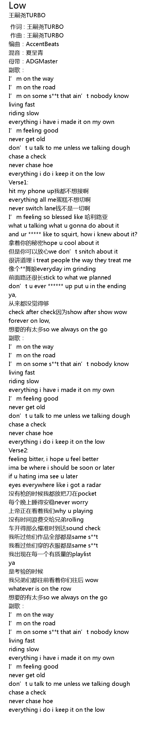 | [01:14.942] | I’m on some s**t that ain’t nobody know |