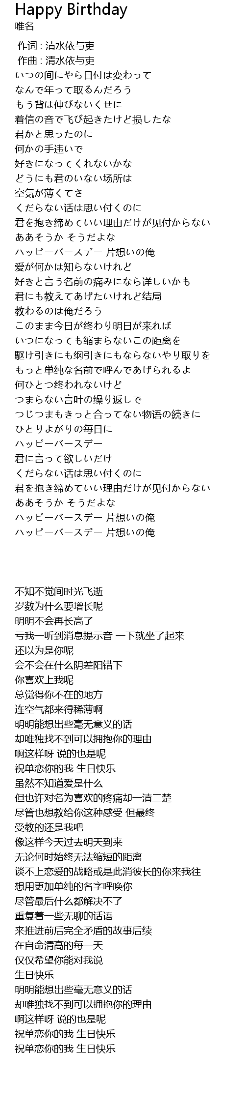 | [03:32.547] | 祝单恋你的我 生日快乐 |