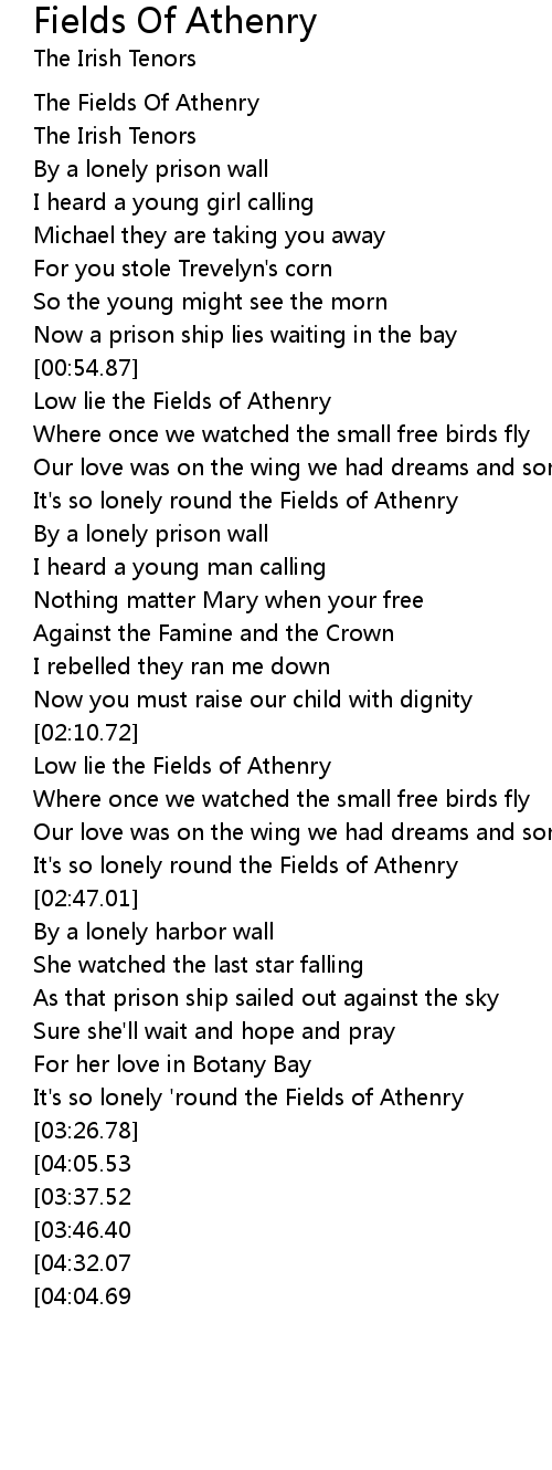 It's so lonely round the Fields of Athenry |