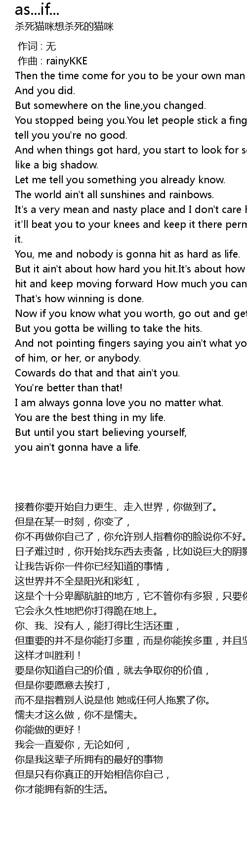 | [00:52.527] | You stopped being you. You let people stick a finger in your face and tell you you' re no good. |