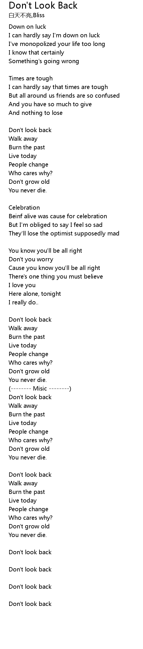 | Don't look back |