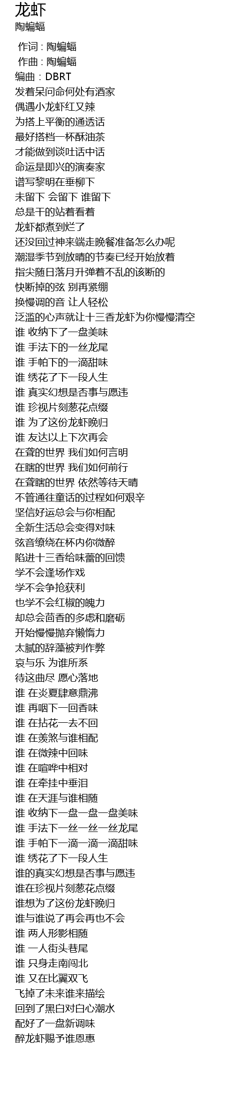 | [0:43.000] | lóng xiā dōu zhǔ dào làn le |