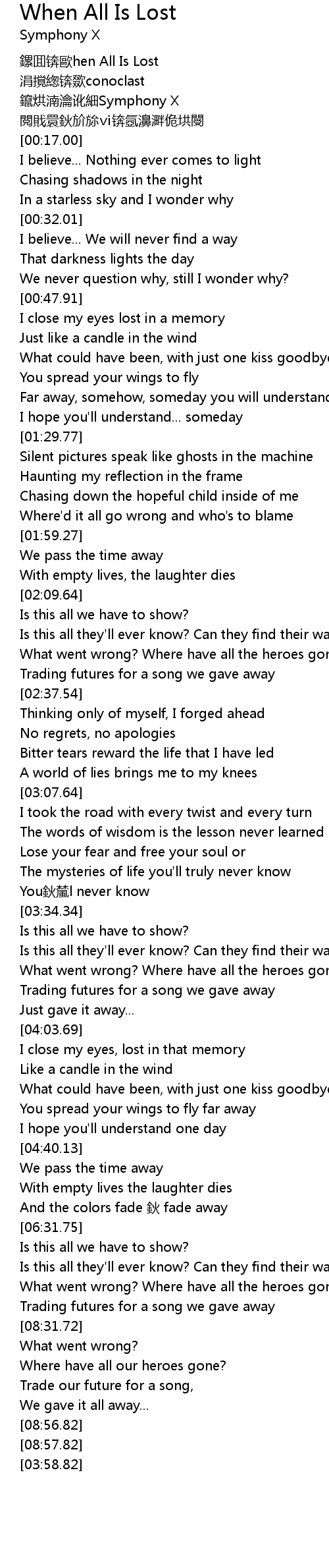 | [00:00.00] | 鏍囬锛歐hen All Is Lost |