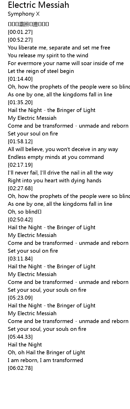 | [01:43.52] | My Electric Messiah |