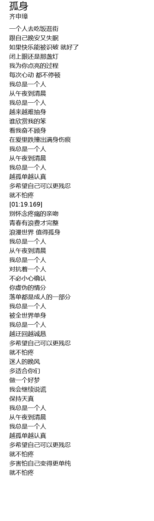 | [01:03.169] | 我总是一个人 |