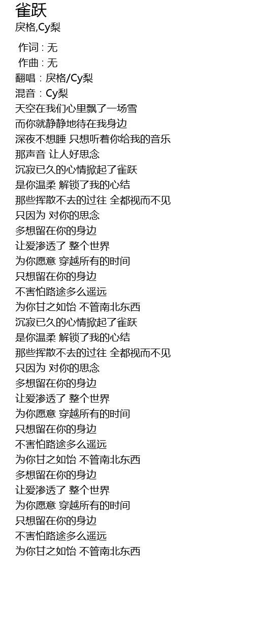 | [00:00.934] | 翻唱:戾格/Cy梨 |