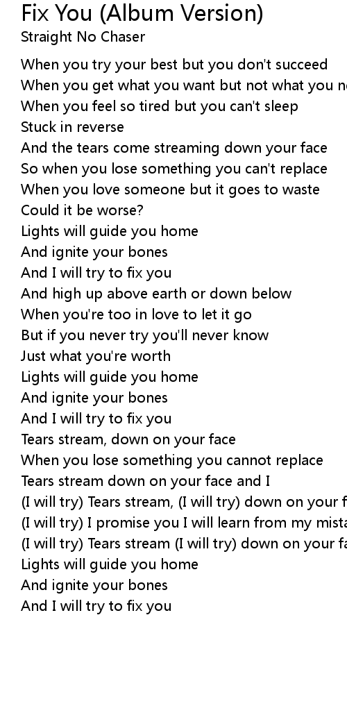 And I will try to fix you |
