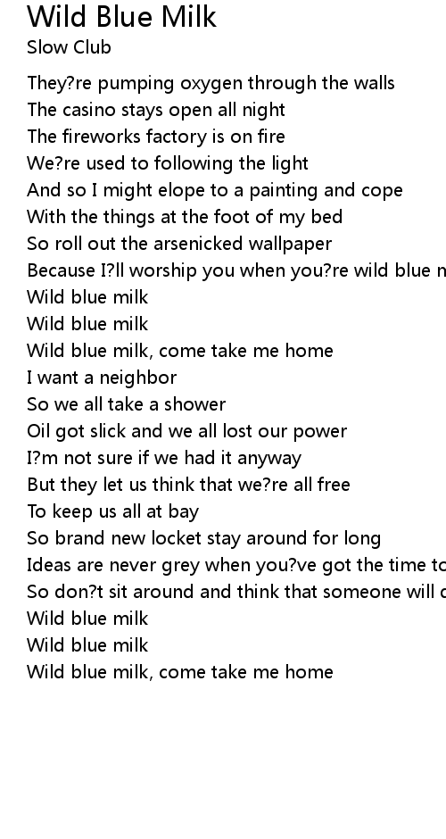 Wild blue milk, come take me home |