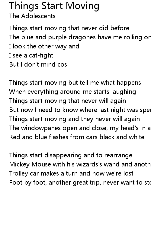 Things start moving and they never will again |