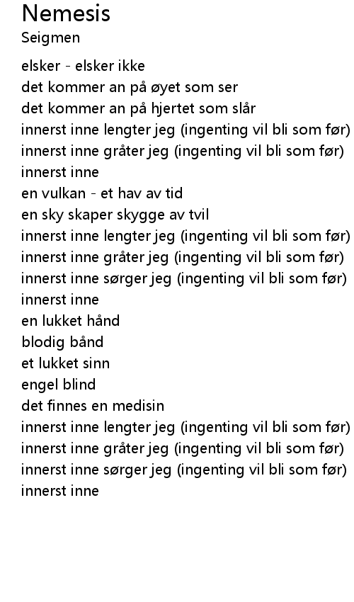 | innerst inne lengter jeg ingenting vil bli som f r | |