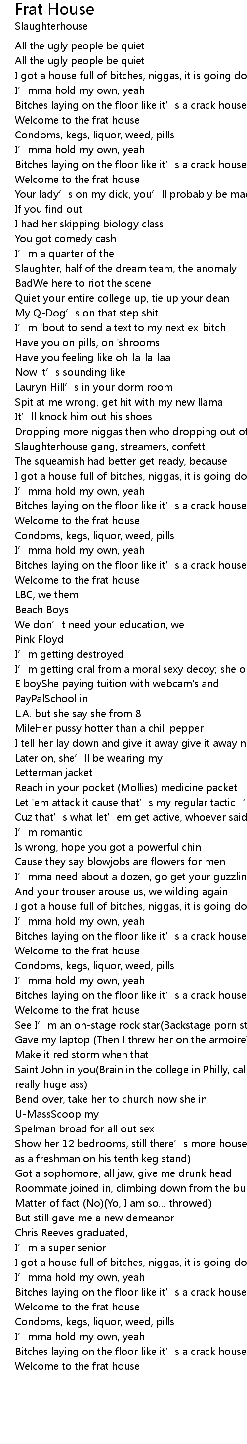 | Show her 12 bedrooms, still there' s more house left Titty in my left handDrunk as a freshman on his tenth keg stand | |